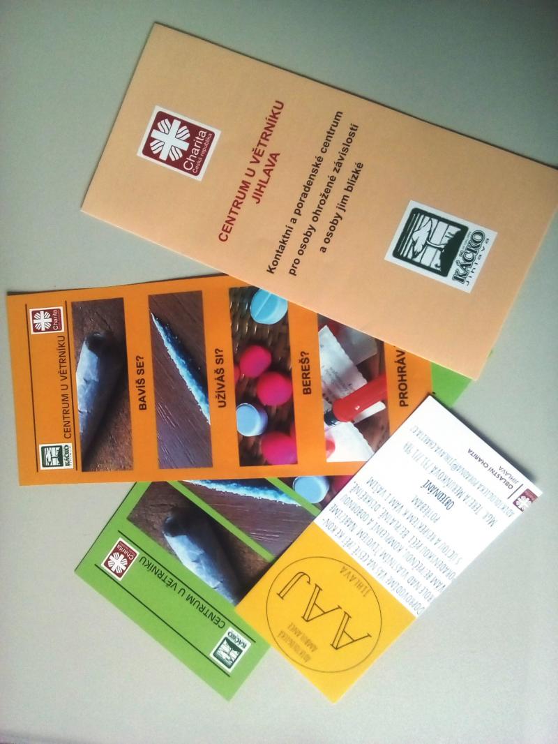 Pan Michal Matula, terénní pracovník služeb kontaktního centra nás seznámil se samotným fungováním organizace. Centrum U Větrníků provozuje svoji činnosti od roku 1999. Organizace funguje na principu Harm Reduction. Jedná se o tak zvanou „minimalizaci škod a rizik“, kdy je snížení škodlivých účinků drog a jejich dopadů brána jako efektivnější způsob řešení než jeho pouhé potírání, přijímá se užívání legálních i nelegálních drog za nedílnou součást našeho světa, dále veřejné zdraví je nadřazeno nad dlouhodobý cíl uzdravení (abstinence). Služba kontaktního centra dále nabízí výměnu použitého injekčního materiálu, testování, sociální práci, informační servis, krizovou intervenci i nově adiktologickou ambulaci, kterou nám představila paní Mgr. Tereza Meruňková. Od roku 2008 funguje K-centrum i mimo město Jihlava a to v Telči, Třešti, Dačicích, Pelhřimově a Humpolci.